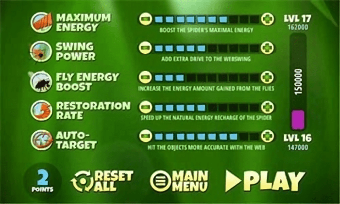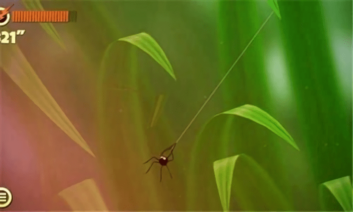 2、你可以通过操纵杆控制小蜘蛛的运动,并使用各种操作来攻击或避开障碍物。