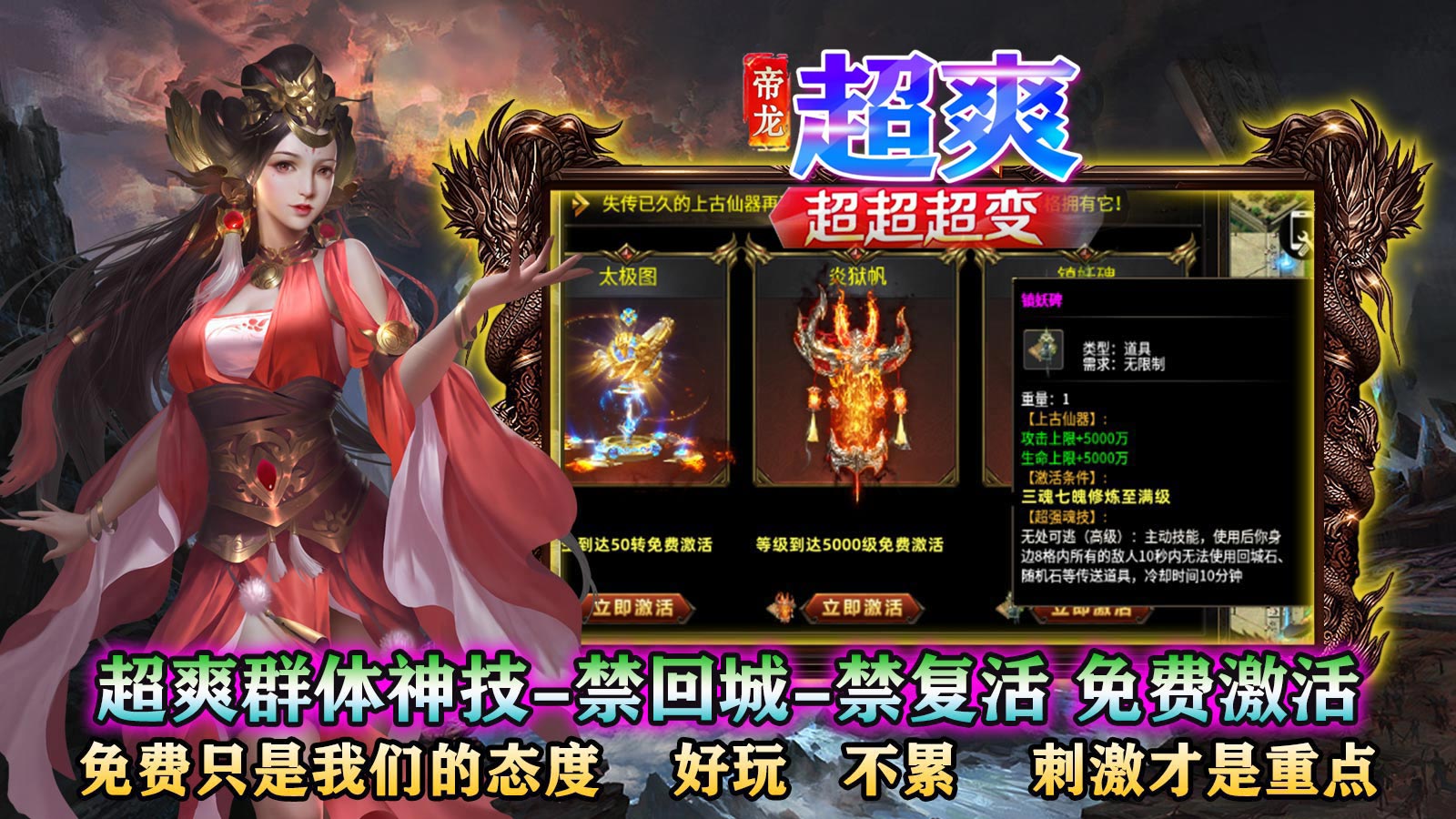 帝龙超爽超超超变手游作为一款需要丰富打斗技巧的传奇手游,在角色进阶方面,游戏提供了多种装备和道具供用户升级,强化自己的实力,进入游戏后,在游戏里玩家可以与全球用户进行互动,组队挑战各种BOSS,同时还可以上交易市场进行买卖交易,赚取游戏内的货币。