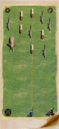 还是远程兵还是先来一轮齐射,这次目标改成下方的战车,这样可以削减战车的血线,减少输出,勇士继续待机,方向朝向战车,看看下回合的情况。
