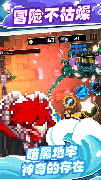 1、你也可以在像素图像的横向卷轴动作冒险游戏中打击你所遇到的小怪物并坚持到终点。