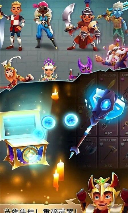 2、在进行跑酷的时候收集道具和金币,可以解锁超棒的英雄和武器,玩法更有趣。