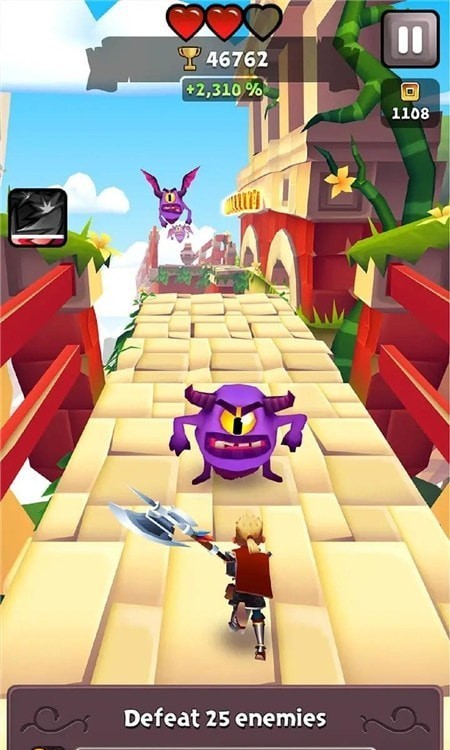 3、挑战自我,尝试收集各种物品和财富,通过奔跑、躲避、跳跃和冒险来获取奖励。