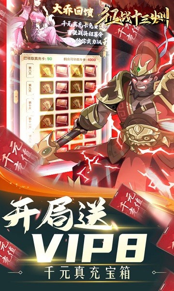 征战十三州这是一款角色扮演游戏,游戏是以三国为背景的玩法,你需要操控里面的角色,让你完成通关任务,也可以招募更多的兵将,让他们更好的组成强大的队伍,能够让你征战沙场享受更多的战术。
