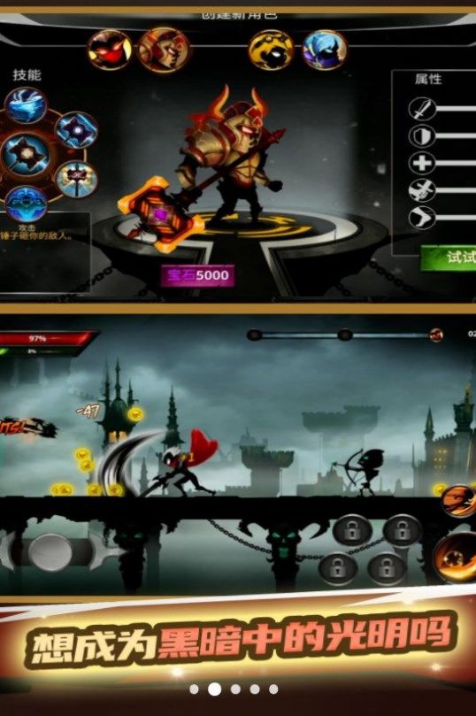 1、拥有各种角色和技能系统,使用高度自由的战斗。趣味无限;