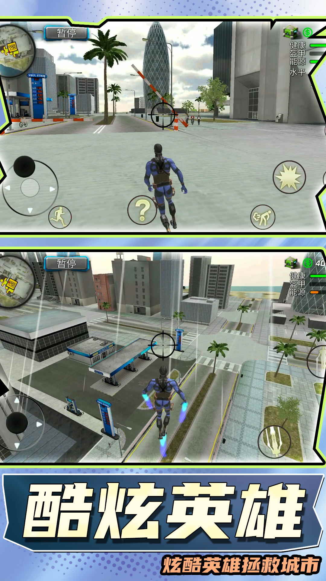 3、【敌人】:你将在游戏中遇见各种各样的敌人,展现你强大的超能力,一招击杀所有敌人,保护城市。