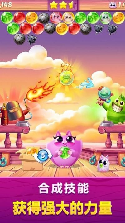 1、利用道具,如炸弹和猫咪,来帮助您快速消除泡泡。