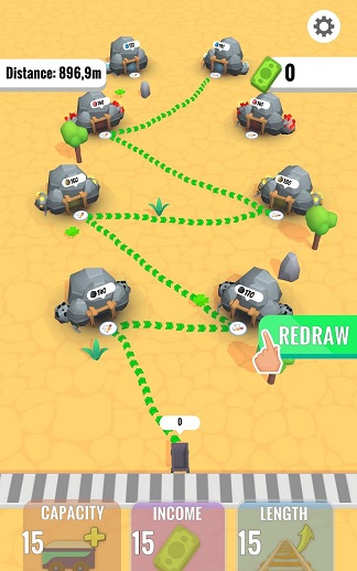 画画矿工作为一款放置矿车挖矿的经营类手游,你将扮演一名矿工,通过绘画的方式来描绘为矿车制定路线,矿车就会自己搬运矿产,为你赚钱,利用这些钱去升级矿车提升画线的距离,到更远的地方去挖掘更有价值的矿产。
