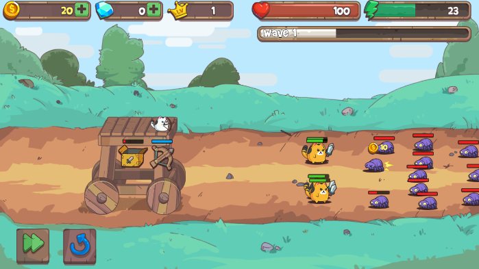 猫机器人空闲防御作为一款策略类的手游,在游戏里面用户通过不断的建造来防守敌人的攻击,猫机器人空闲防御手游中我们的村庄非常安静,突然有一天,怪物袭击了我们的村庄,我们需要尽一切可能来保护它,当怪物来袭时,我会带领小猫机器人战斗,杀死所有的怪物,从而保护村庄。
