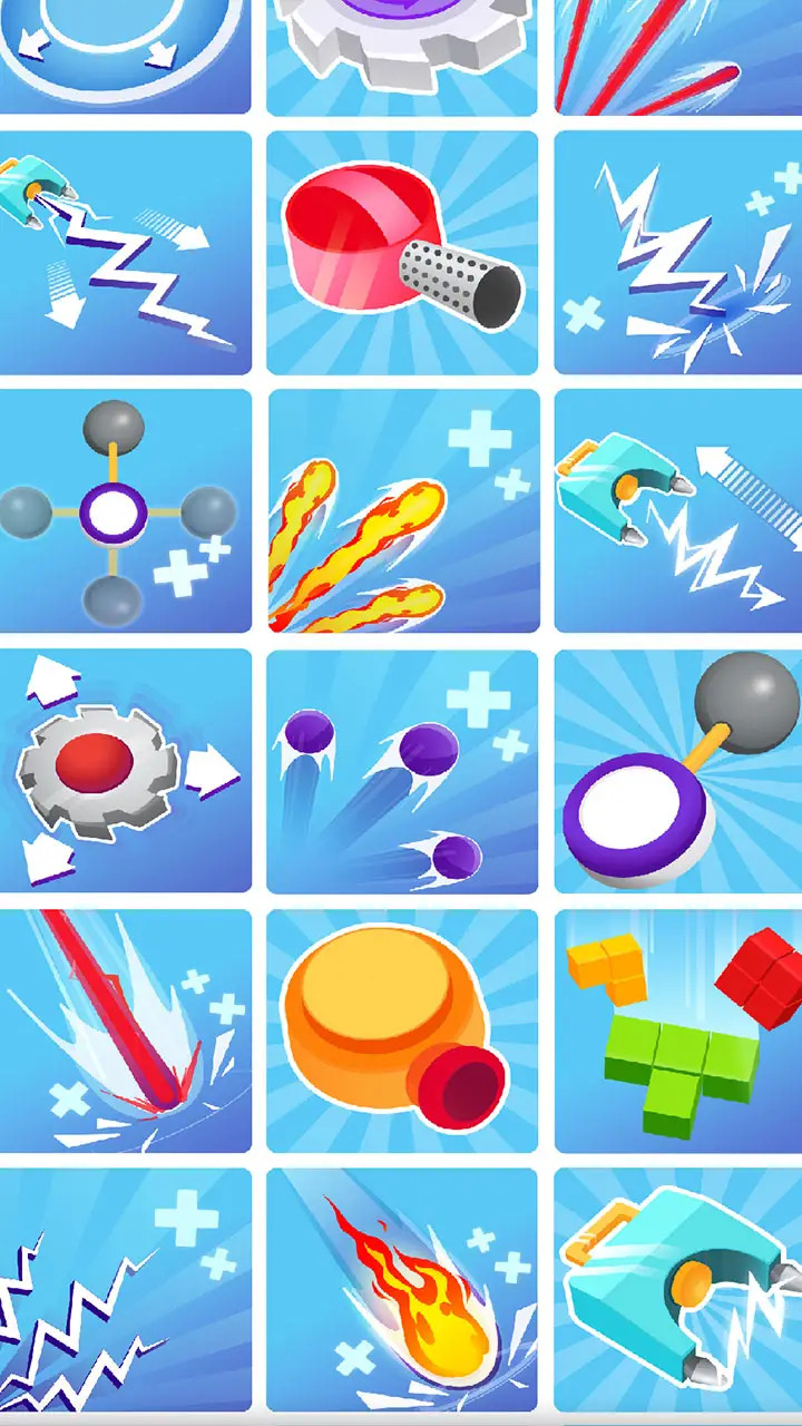 所有关卡都有不同的地图,在游戏里玩家在游戏里可以随意摆放各种武器完成设计操作,把屏幕中所有的障碍物清除干净就可以获取胜利,用时最短的还可以获得更多的道具。