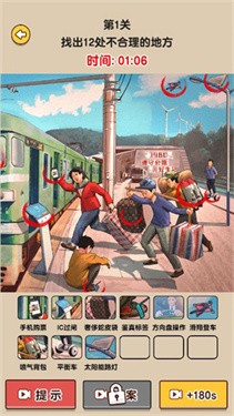 2、【找出茬点】:通过眼力和注意力,寻找出图片中不同之处,点击屏幕标记茬点。