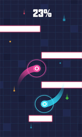 3、极跑酷游戏中轻松控制你的曲线需要你的注意力,同时兼顾两边,顺利解决问题。