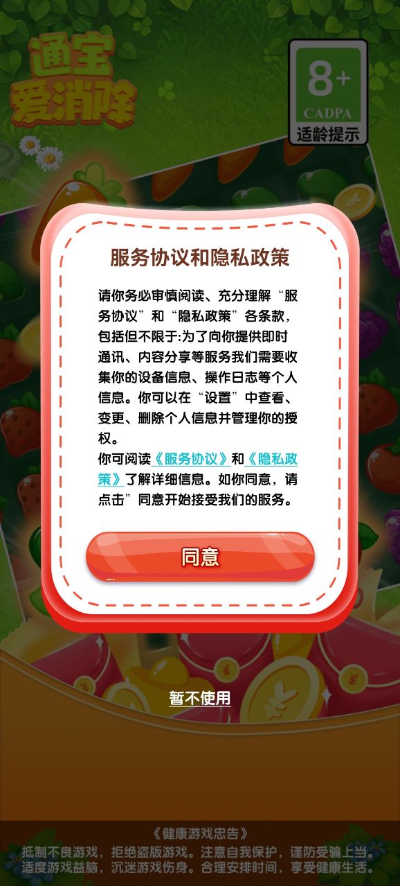 通宝爱消除,快速消除一番,所有的水果图案都可以匹配,每次都有不少的红包福利,可以多领取,这个可是非常的棒,而且一点都不缺,保证可以兑换的,通宝爱消除值得你体验。
