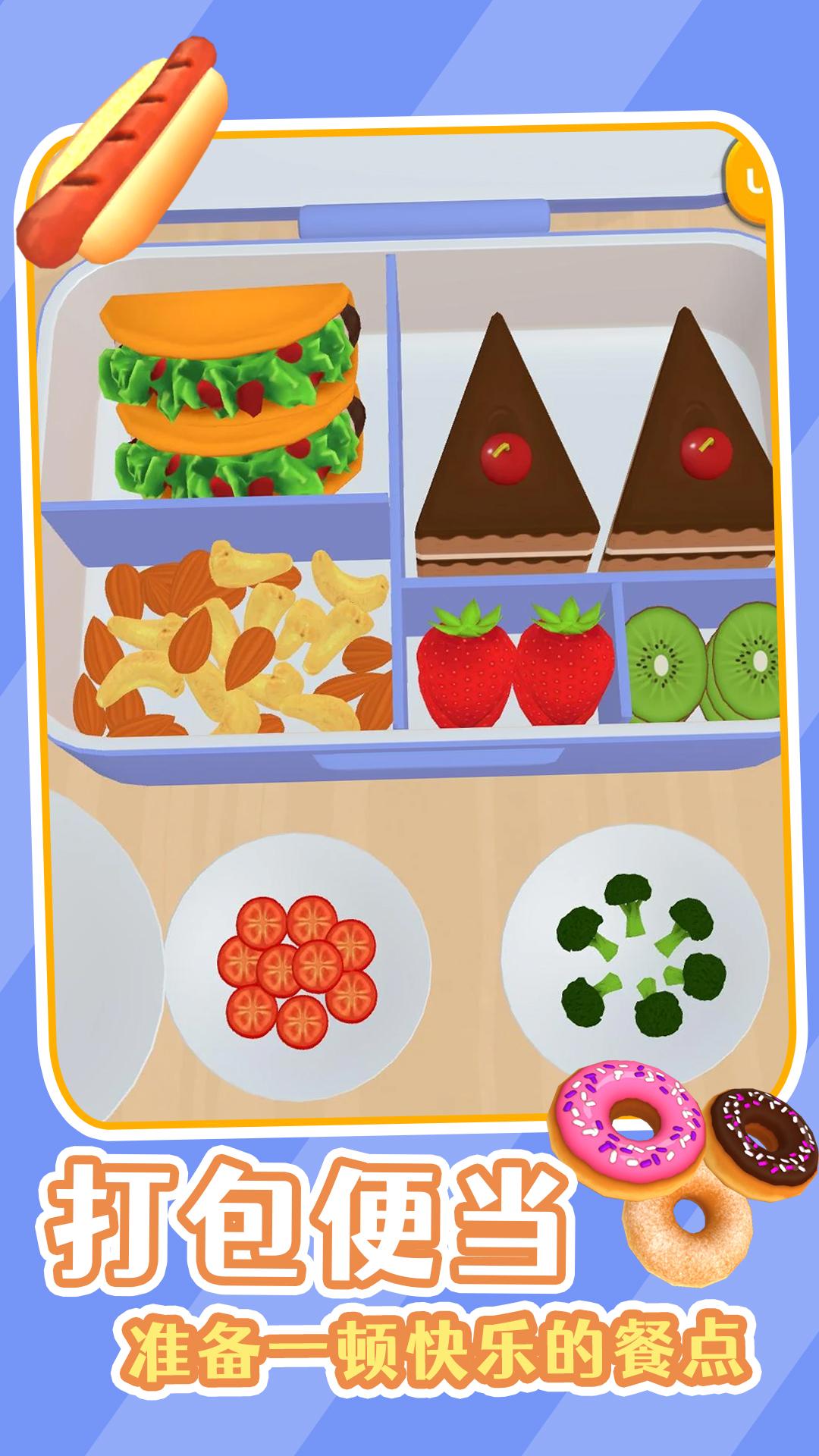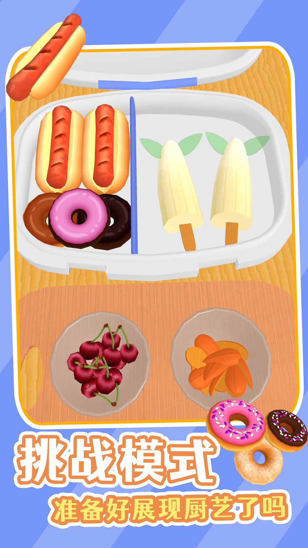 1、游戏中多种不同的游戏模式,完成相应的闯关挑战,或自由制作便当,每一种都能获得快乐。