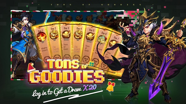 每天享受大量的奖励!登录游戏即可免费获得20张幸运抽奖。登录7天后,即可免费获得著名的传奇人物赵云。在第一周内免费获得高达30,000金币的独家皮肤!很多奖金将帮助您快速成长!