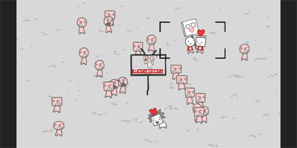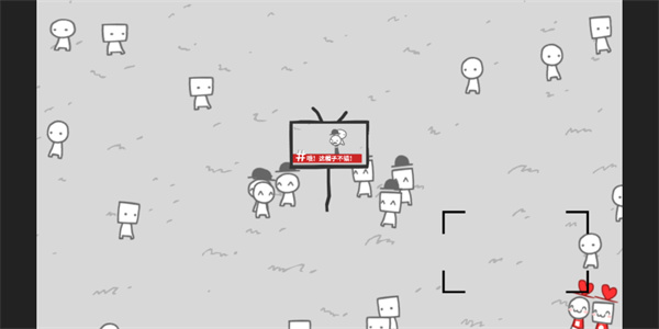 3、进入游戏,可以看到许多小人在草坪上闲逛,点击屏幕上的区域即可聚焦拍照,按下就可以将这个与众不同的小人拍下