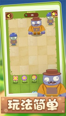 --手游玩法简单,只需要合成植物,然后放置到花园上抵御僵尸的入侵,击败僵尸就能获得高分。