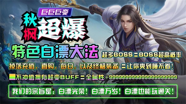 秋枫超爆巨巨巨变,拥有超高爆率的传奇游戏。上线爆率直接拉满,打怪掉落一切。秋枫超爆巨巨巨变,可白嫖各种奖励,活动多多,在这里你还可以认识许多的朋友,我们一起并肩作战。