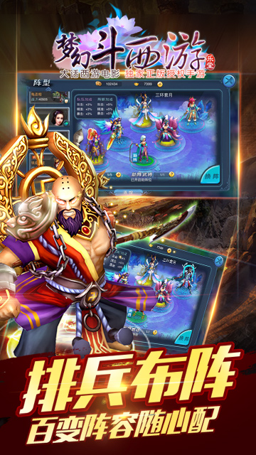梦幻斗西游大话西游电影独家正版授权回合制手游,传承经典,向二十年经典致敬!至尊宝、紫霞仙子等经典角色悉数登场,还原大话西游的经典剧情。画面绚丽,特效炫酷。玩法上既保留回合制的策略性和易用性,又增加了手动释放技能的操作感,并且保证了战斗的流畅性。 专业团队,真人配音,再现大话西游电影经典原声!游戏中收集大话西游电影中经典角色,升级、进阶、强化装备、学习技能提升战斗力,多角色作战,生死相随!
