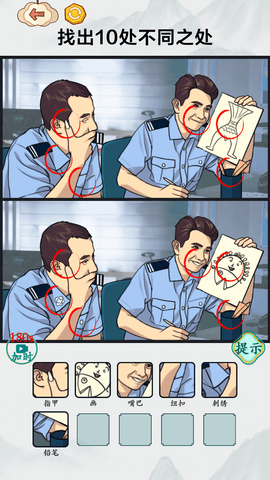 一款休闲益智找茬游戏,让你擦亮双眼,动动脑筋,在一幅幅图画中找出不对劲的地方。你会发现一些奇怪的事物出现在古代场景中,比如电风扇、收音机、耳机等,这些超出现实的元素会让你目瞪口呆,爆笑不已。