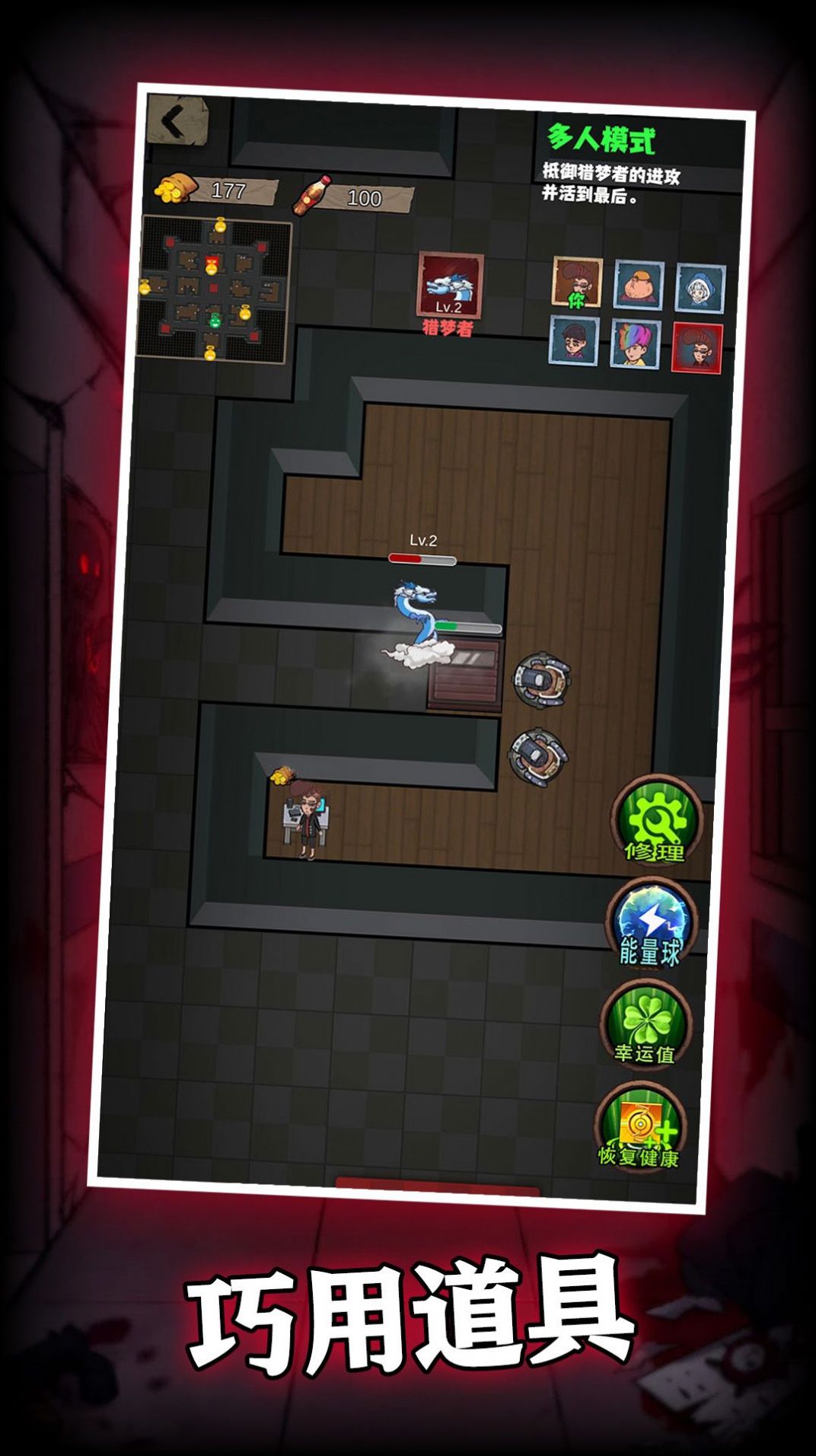 猛鬼的等级在不断的提升,玩家需要获得更多的金币,从而可以对塔防进行升级,还要注意大门等级的提升以及产出金币速度的提升,能邀约好友加入对战的行列,也可随机匹配队友。