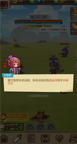 1、三国大比拼开启了,发挥出你的优势,一路上不断的激战,将敌人击败。
