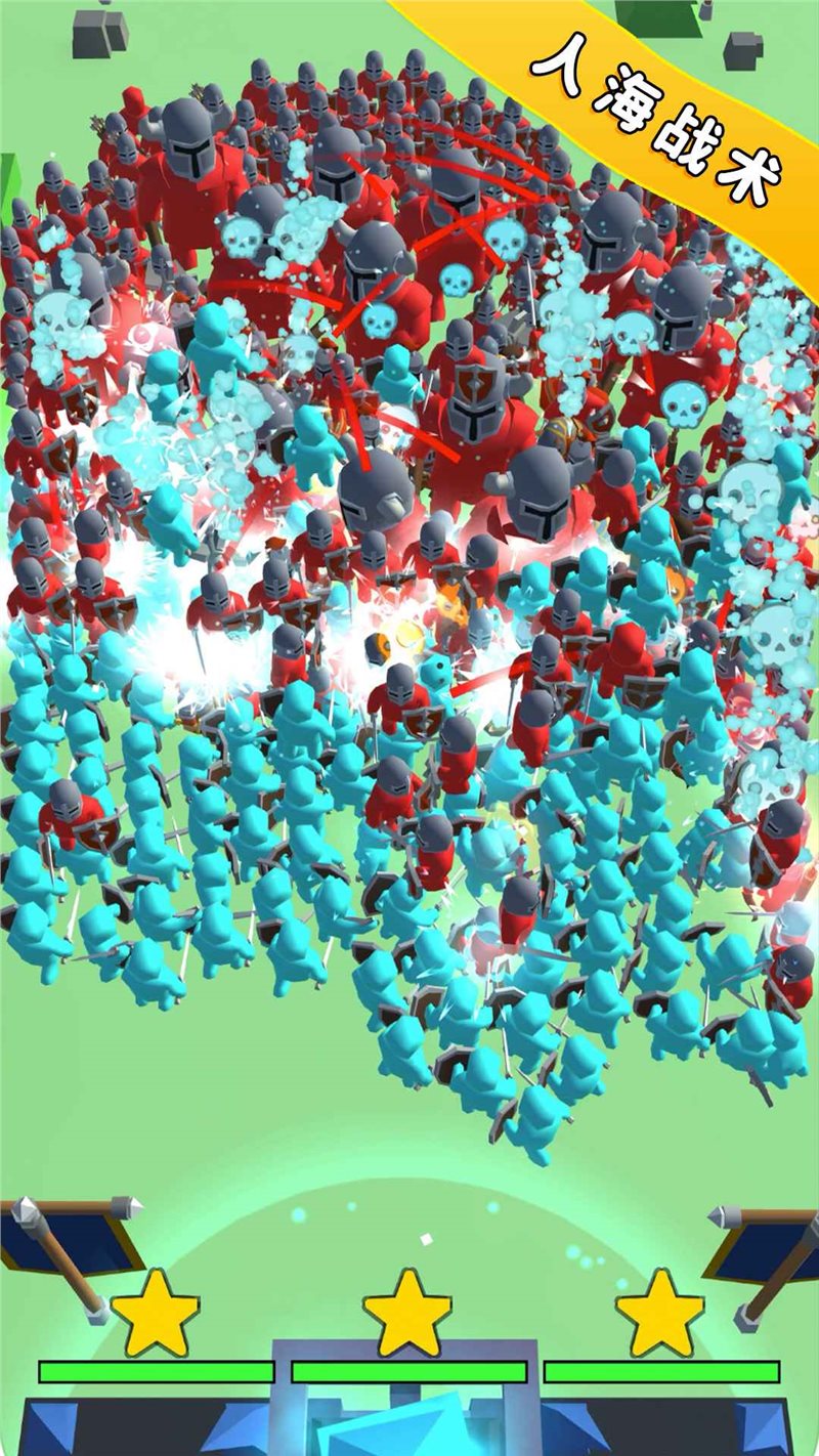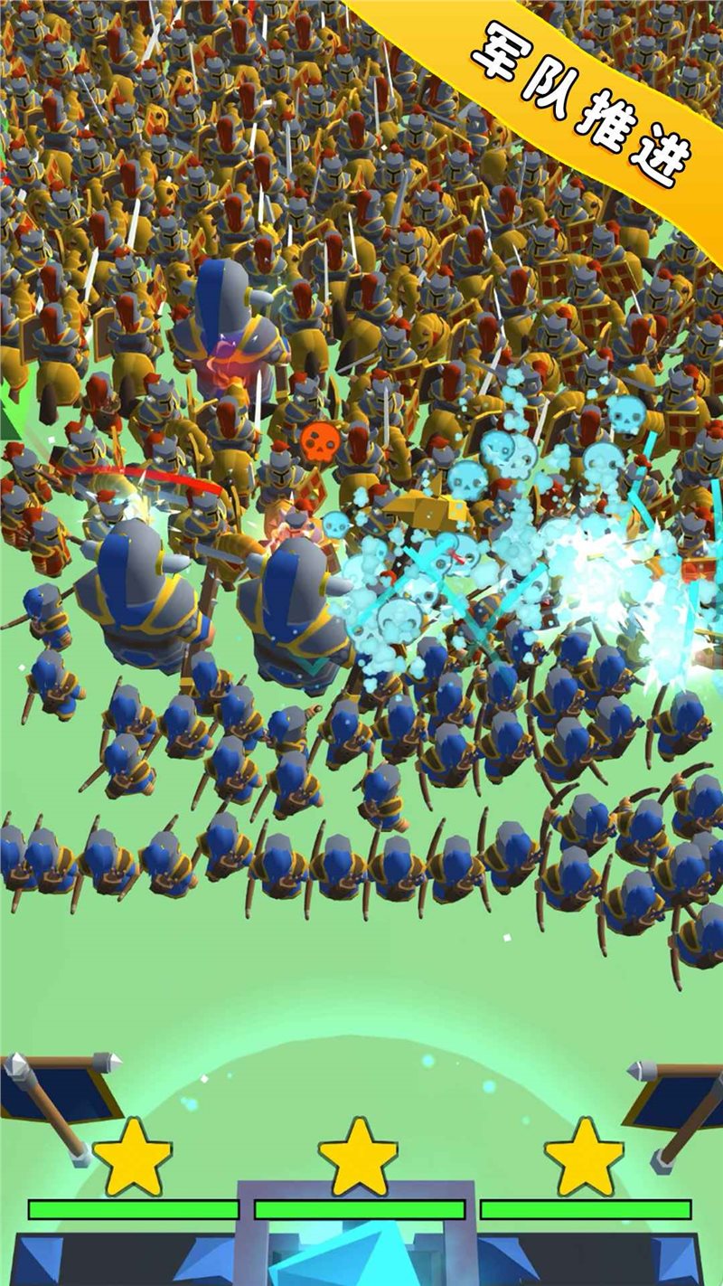 2、在每一场战斗后,你将会获得大量的金币,这些金币将会帮助你提升自己的士兵,变得更加勇勐
