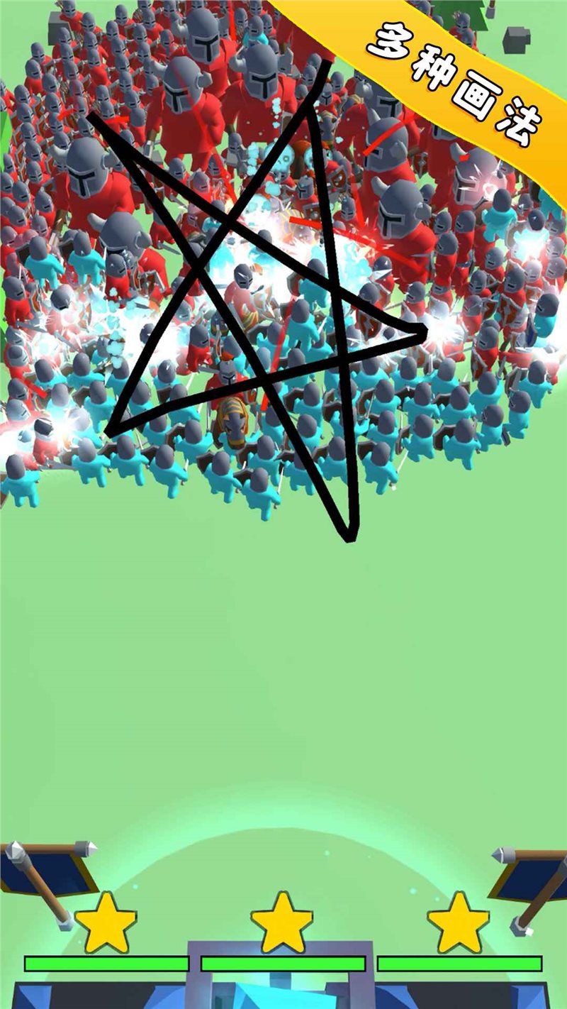 1、游戏中的士兵攻击全都靠你亲自来画出,正如游戏名一样输出全靠画