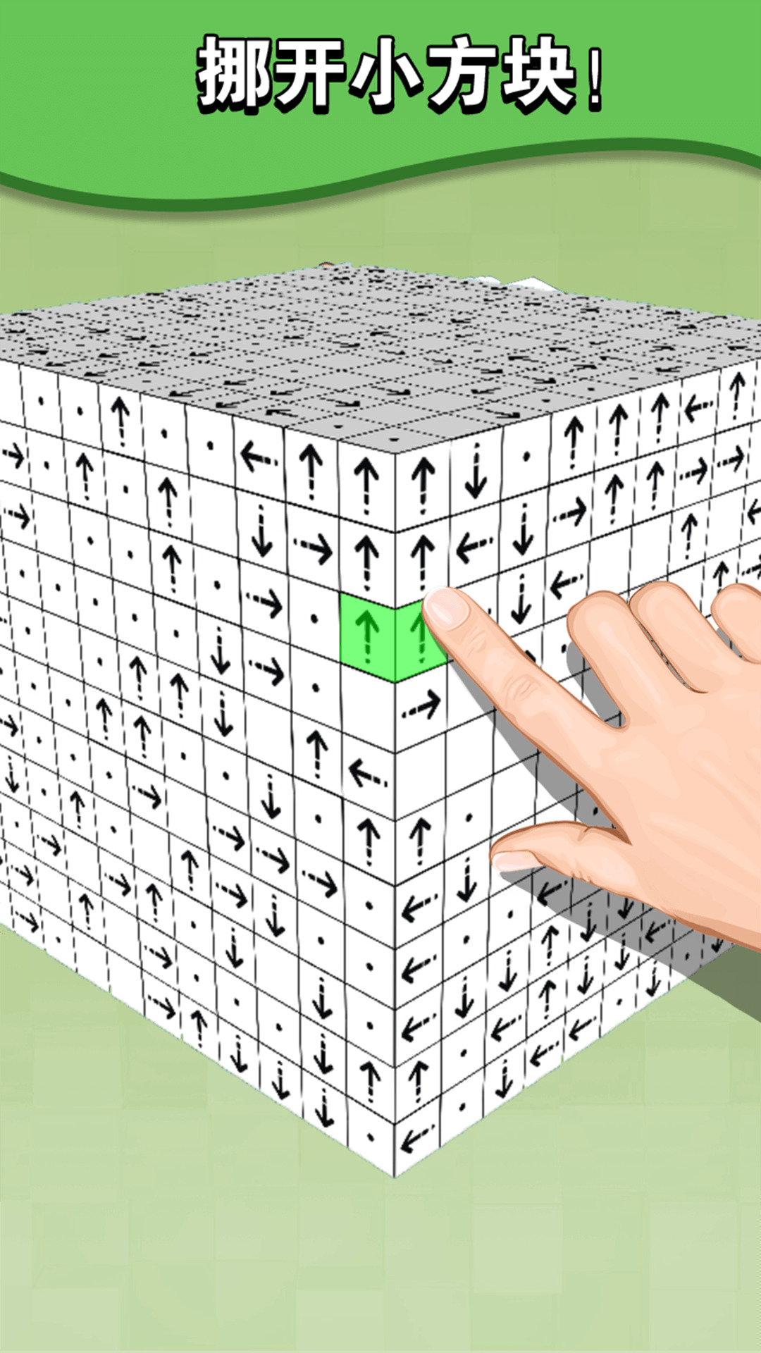 3、然后旋转方块查看整个方块,从多个角度查看可以消除的箭头;