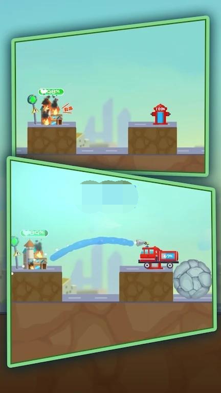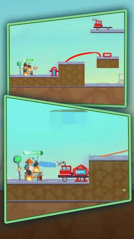 1.爽快射击:通过控制消防车撞开消防栓,浇灭火灾,体验战斗的刺激快感。