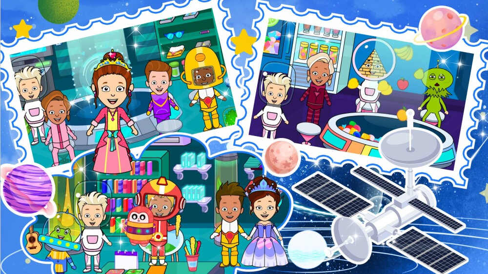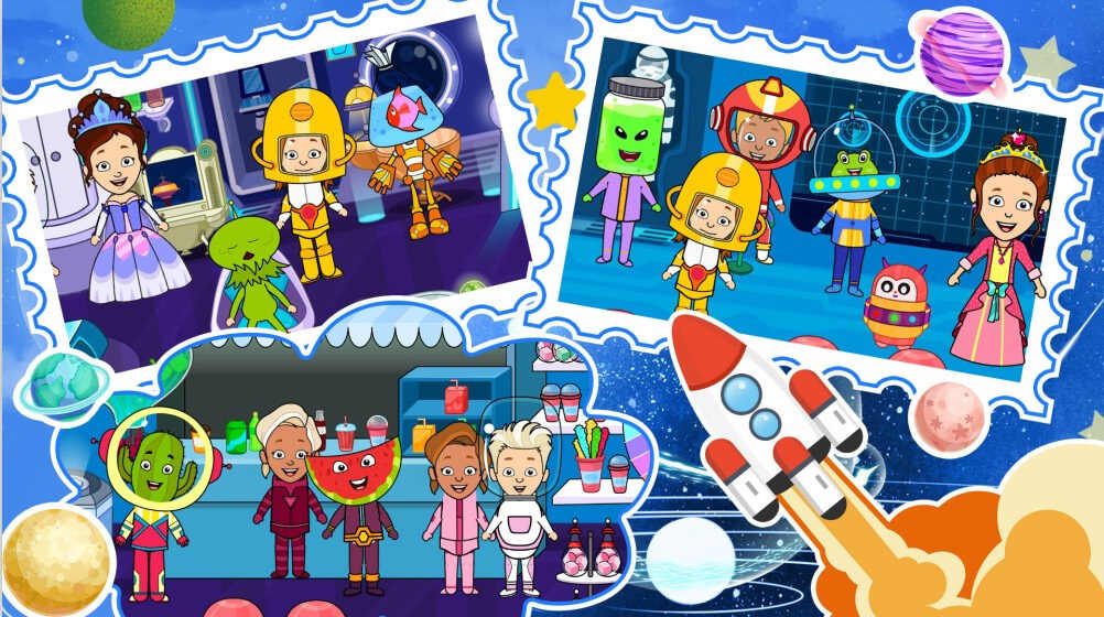 1.Q版卡通画面场景,让玩家可以自由的傲游这个庞大的太空世界。