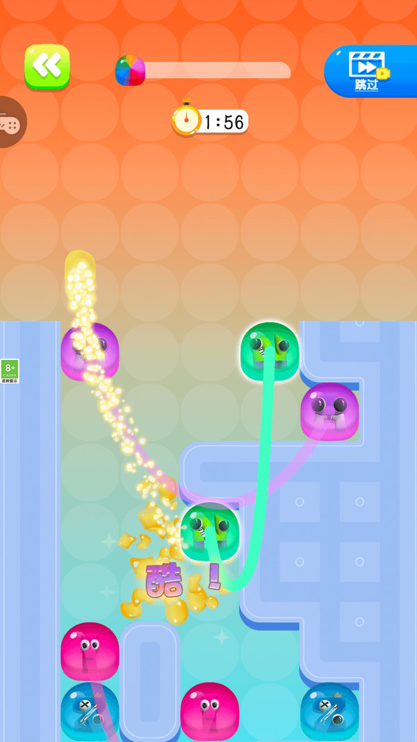 1、同色方块连一连,就能够轻松触发消除效果并得分。