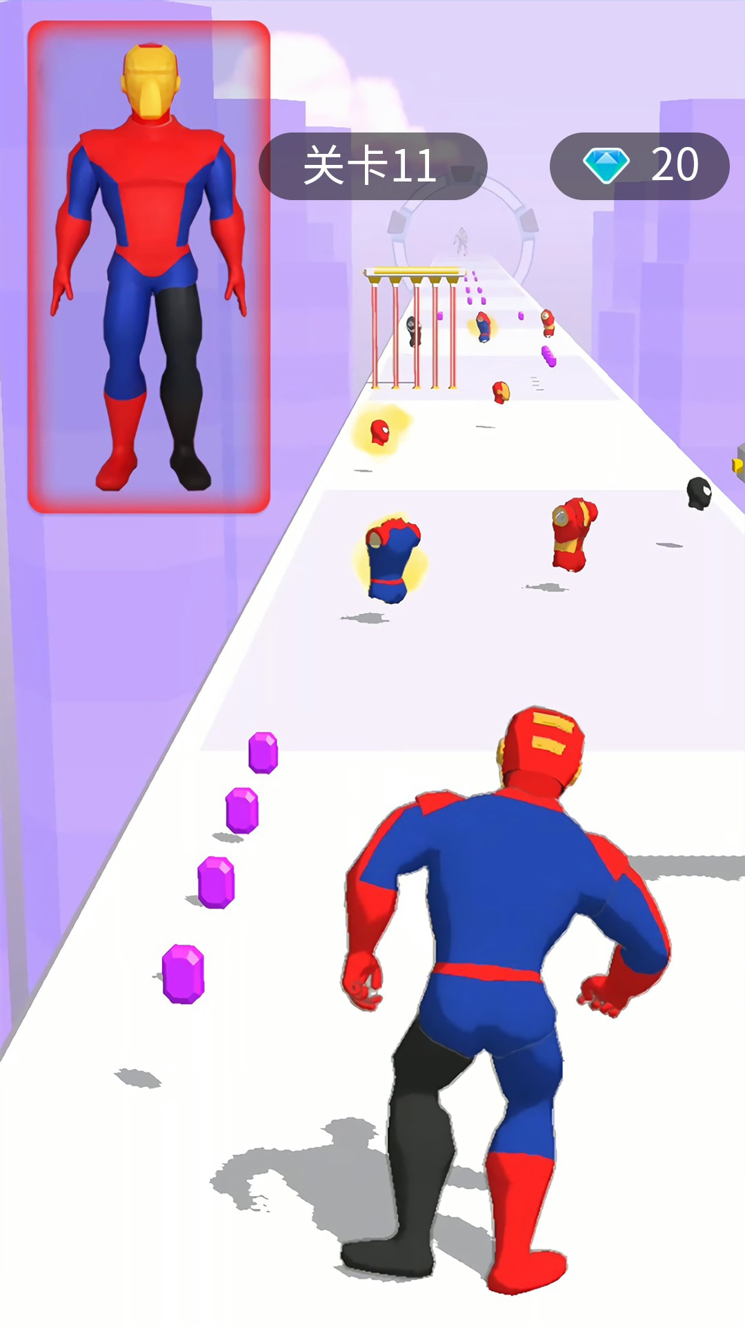 宇宙英雄模拟器,一款休闲跑酷竞技duel游戏,玩家操控你的英雄不断前进,选择适合自己的超级英雄,duel沿途的BOSS,perfect通关到底吧。