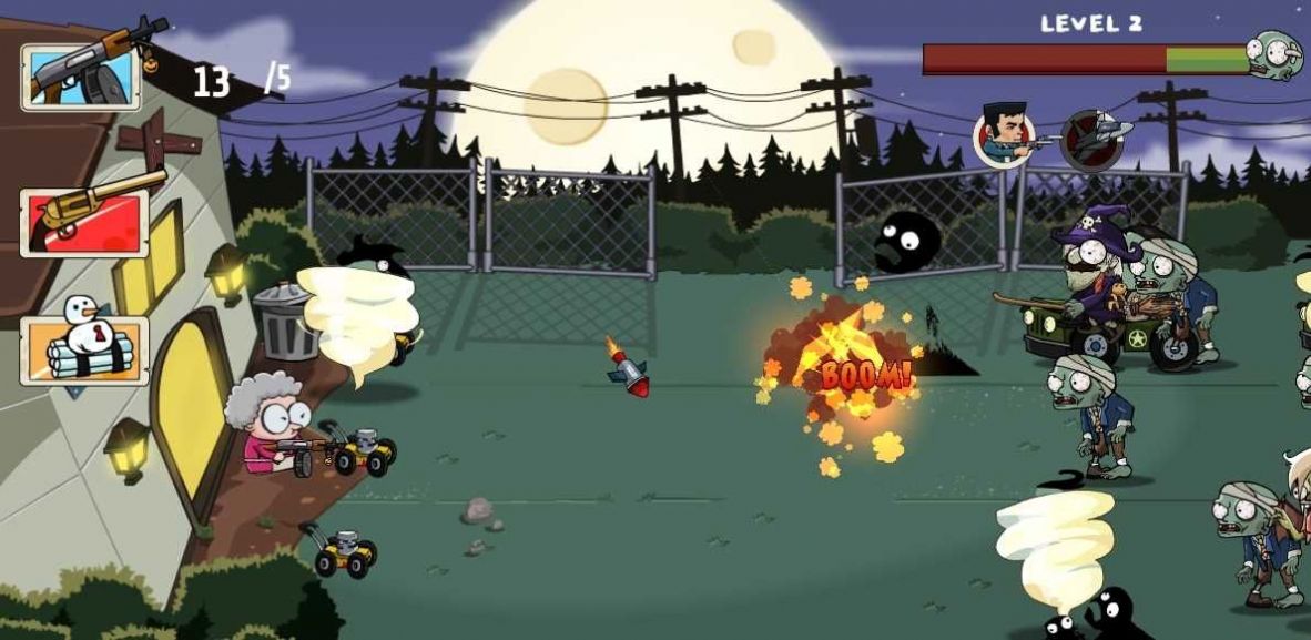 2、在游戏里你可以化身奶奶英雄,为家园而战。