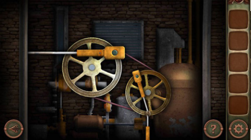 先拿到一个纸条和一个锥子。来到这个界面,先拿到一条类似皮带的物品,然后有三个转轴,点击可以看到阿拉伯数字,点击纸条,有三个对应的阿拉伯数字,调整三个转轴的数字。 用前面捡到的锥子放到机关上,传送带也放上去。点击栅栏门旁边的绿色装置,将4个按钮全部拖动到另外一端,点击就出现如上图所示的界面,然后将中间的圆钮滑动到下面,点击右下角的开关。 这个时候门就开了