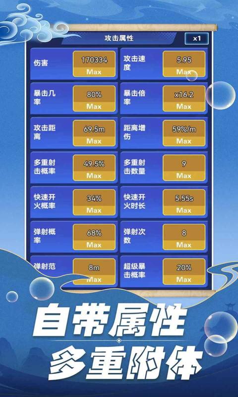 1、让你通过操作泡泡进行战斗,还能开启不同技能与道具。