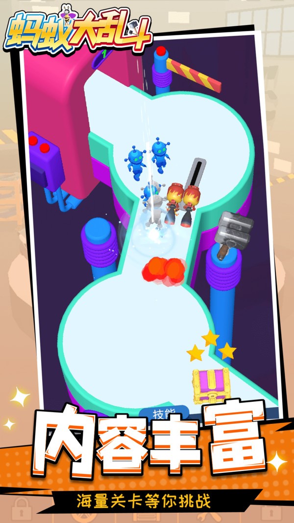 蚂蚁大乱斗作为一款蚂蚁为主角的冒险战斗的闯关趣味游戏,在游戏里玩家在进入游戏会会看到不同的蚂蚁,他们有不同的技能属性,在游戏里玩家可以在了解后选择自己喜欢也合适的进行战斗,游戏里的地图很大,在游戏里玩家要控制着角色不断的冒险,探索,收集更多需要的资源和武器,打败更多的敌人。