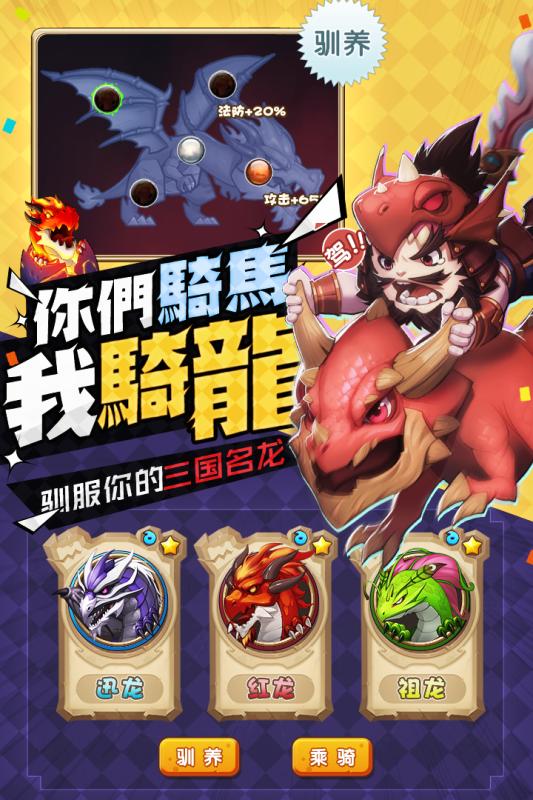 驯龙三国手游草花版是一款号称扫平往日三国套路但是这款手游非常具有创新,游戏首创9V9立体策略对战手游,在加上玩家的策略,所以很多手游都非常没有创新,也是让玩家眼前一亮。