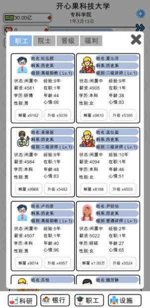 3、扮演学校的校长,招聘不同的教师,完善和培养自己的教职工团队。