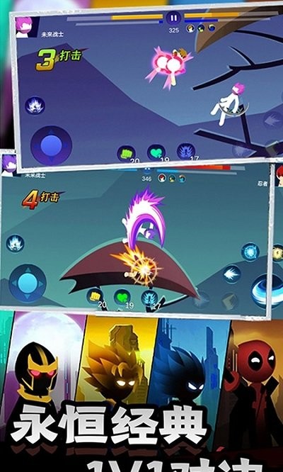 经典的火柴人形象诙谐幽默,游戏画面精致炫酷,音乐音效刺激带感,操作方式简单,是休闲放松的不二选择。炽热对决游戏中用户需要操作火柴人进行一场场激烈刺激的格斗比赛,体验不同武器带来的强烈打击感,成为这个战场上的绝对王者。许多精心设计的战斗关卡等待你来挑战,火柴人英雄的最新冒险就要开始了!