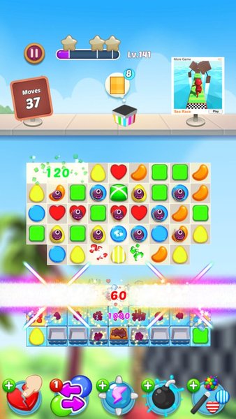 糖果消除游戏中呈现给用户的场景非常精致,凸显了整个游戏的趣味性,给你绝佳的视觉享受,放松身心,只有在游戏里面不断消除才能获得高分,喜欢就下载吧。