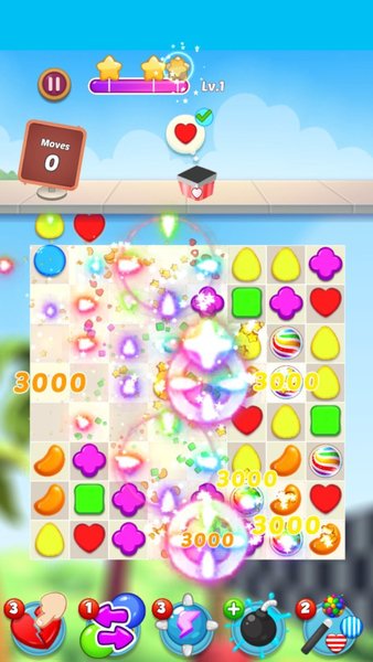 3、开启关卡:在糖果缤纷消消乐游戏中,在游戏里玩家可以通过通关开启更多关卡和挑战模式。每个关卡都有不同的难度,需要策略和技巧来顺利通关。
