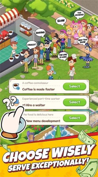 点心店闲置大亨snackbar游戏作为一款模拟经营游戏,让你成为一家点心店的老板,经营你的店铺,成为点心界的大亨。在这个游戏中,您将扮演一位点心店的老板,目标是发展你的店铺,增加你的财富和名声。您需要策划和组织各种活动,制定和实施销售策略,增加您店铺的知名度和实力,在市场上获得更多的份额。