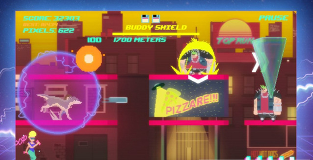 顶级跑酷作为一款卡通像素风格的跑酷玩法手游,在游戏里面用户将扮演主人公凯文和他的宠物犬巴迪在繁华的城市中展开冒险的跑酷。