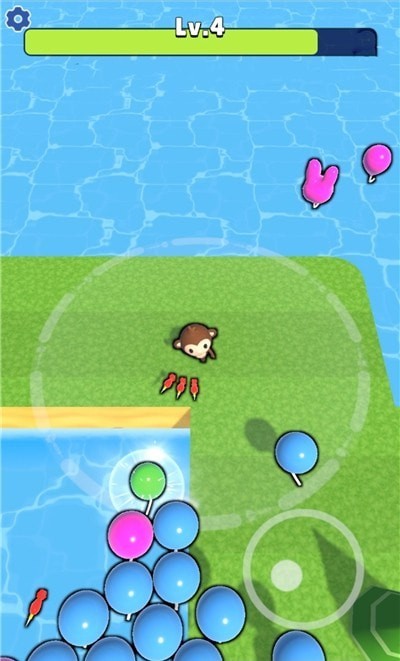 1.在屏幕上快速的移动,躲避突然出现的气球浪潮,让我们成为幸存者。