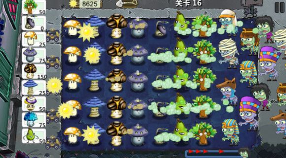 1、丰富多样的植物和僵尸种类,让游戏具有很高的可玩性。