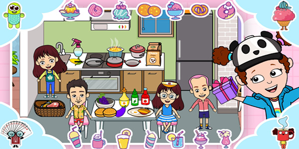 2、横版的卡通游戏,在2D场景里做任何事情,帮助家人在晚餐前准备好餐具。