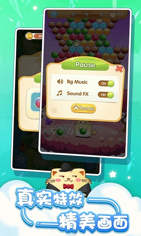 开心萌猫泡泡龙,最好的泡泡射击游戏!爆炸气泡,完成挑战!现在免费玩!