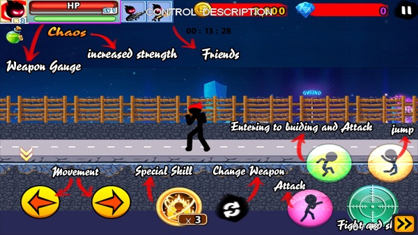 4、游戏不仅仅作为一款单纯的战斗游戏,它还包含了超多的游戏内容。在游戏里玩家们可以在游戏里探索各种隐藏的宝藏和秘密,开启新的武器和道具,提升火柴人的能力。
