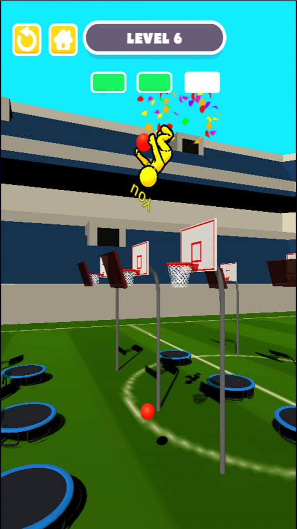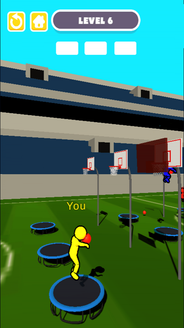 4、人人爱灌篮运动员可以先跳到蹦床上,然后打得很高。