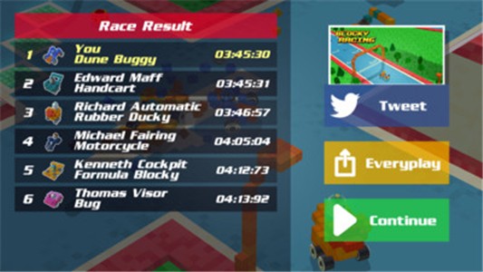 2、真人在线竞技,享受公平竞技的乐趣,所有赛车都由3D方块组成,如同积木一般。